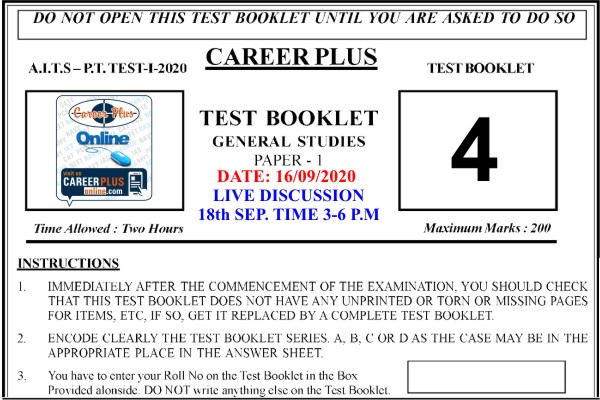 | Free Online Model Test Paper 4 for IAS/PCS (Prelims) - 2020 | |||