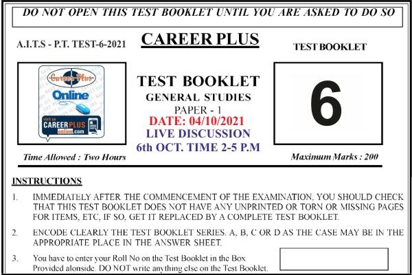 | Free Online Model Test Paper 6 for IAS PCS (Prelims) - 2021 | |||
